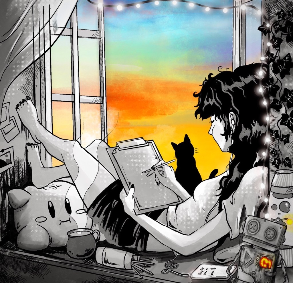 お気に入りの音楽を聴きながら私たちは絵を描きます。